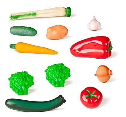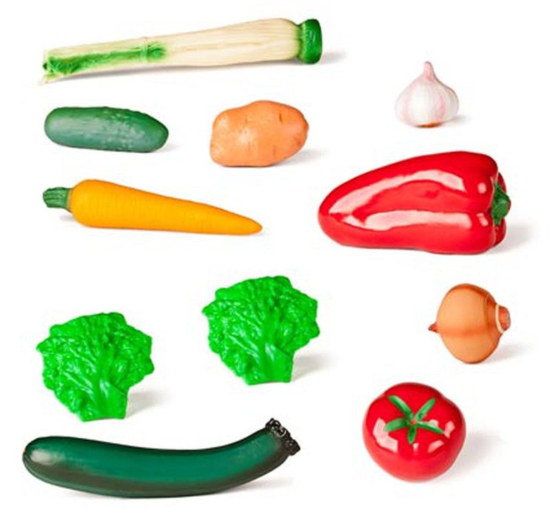 Complemento para el juego en supermercados y cocinitas, incluye 11 hortalizas variadas para que el niño conozca y diferencie los alimentos.