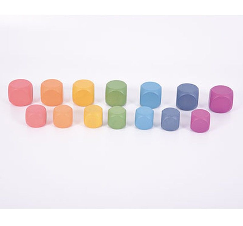 Cubos de madera de haya sólida en los siete colores del arcoíris, con un acabado natural. Ideales para crear juegos imaginativos, fomentar la construcción creativa, rodar, equilibrar, contar y clasificar, secuenciar, hacer patrones y aprender sobre el color. Este conjunto coincide con las otras gamas de Madera de arcoíris, pero se puede usar por también por separado. Este conjunto contiene14 cubos, 2 en cada de los 7 colores del arcoíris. Medidas: 40 x 50 mm