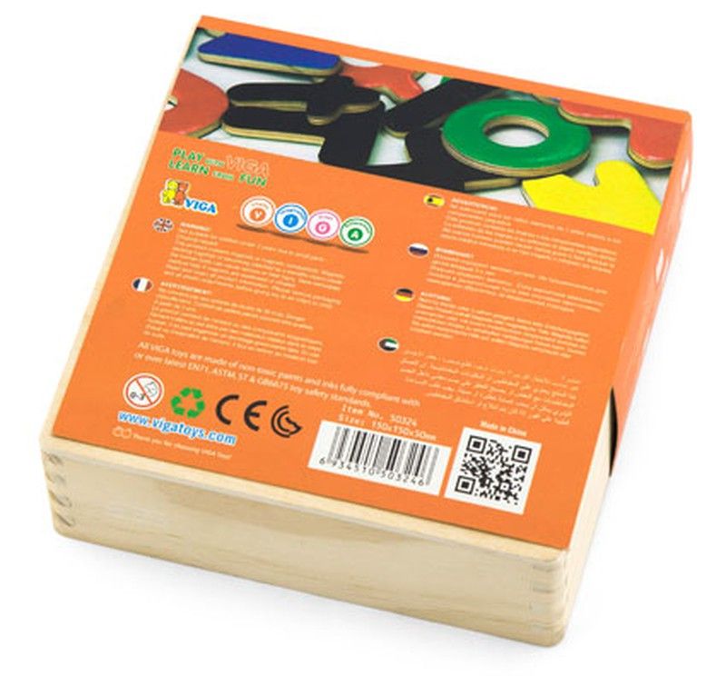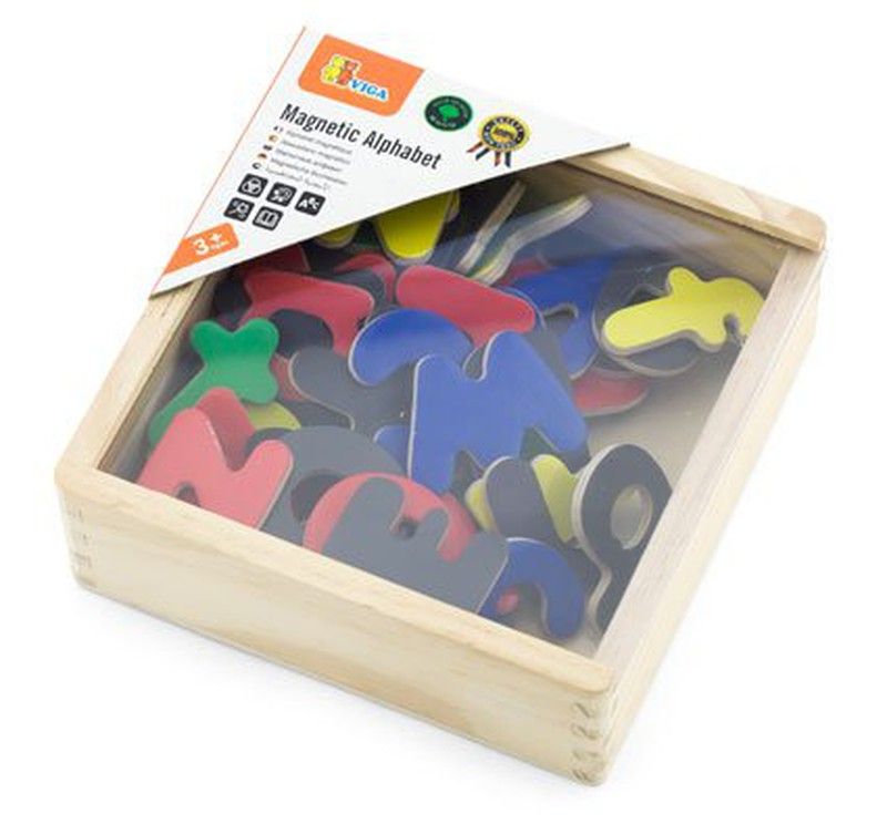 Tamaño de la caja: 14,5 cm x 14,5 cm x 5 cm<br>Tamaño de las letras (aprox.): 4,5 cm x 3 cm<br><br>Conjunto de 52 Letras magnéticas 26 mayúsculas y 26 minúsculas que ayudarán en la preparación escolar, alfabetización temprana, reconocimiento de colores y más. Construir palabras, aprender sonidos o utilícelos en un contenedor sensorial para divertirse más. <br>(no incluye ñ)<br><br><br>Se entrega en caja de madera con tapa acrílica transparente es fácil de guarda