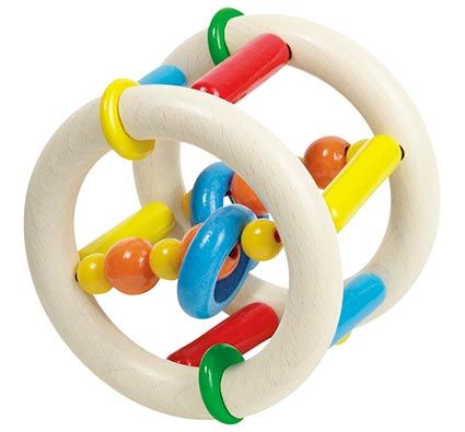 Sonajero y mordedor de madera natural. Dim. 9,5 x 7x 9 cm.