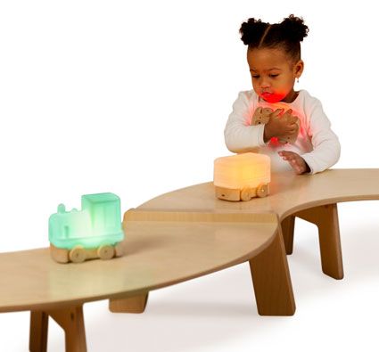 Tamaño de la locomotora: largo 12 cm x ancho 8 cm x Alto 11 cm. <br>Fabricados en silicona blandita y madera. <br><br>Set de 3 vehículos luminosos recargables que van cambiando de color cada vez de los tocas. Botón de apagado y encendido. Se entrega con cable USB.